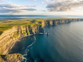 Freue dich auf die Cliffs of Moher, die sich über etwa 7 Kilometer erstrecken und an ihrem höchsten Punkt etwa 230 Meter senkrecht aus dem Meer ragen.