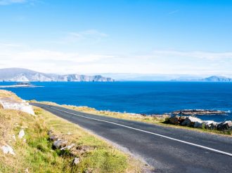 Der Ring of Kerry bietet atemberaubende Ausblicke auf Berge, Täler, Felsklippen und den Atlantik entlang einer etwa 170 Kilometer langen Panoramastraße.