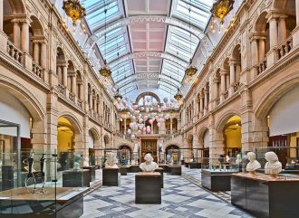 Nach der Führung bleibt noch Zeit, das angrenzende Gebäude des Hunterian Museum der Universität Glasgow zu entdecken oder die mit öffentlichen Verkehrsmitteln 15 Minuten entfernte Kelvingroove Gallery zu besuchen. Im Hunterian Museum, das älteste Museum Schottlands, erwartet uns eine Vielzahl verschiedener Ausstellungsstücke, darunter anatomische Lehrobjekte von William Hunter sowie Artefakte der römischen Besetzung in Schottland. In der Kelvingrove Gallery, Glasgows größter Kunstgalerie, sind eine Vielzahl bedeutender Werke ausgestellt, darunter Salvador Dalís „Christ of St John of the Cross“ sowie der altägyptische Sarkophag von Pabasa. Das im spanischen Barockstil erbaute Museum fügt sich, wie viele andere Gebäude Glasgows, perfekt in das Stadtbild ein: Roter Sandstein ist ein charakteristisches Merkmal Schottlands größter Stadt.