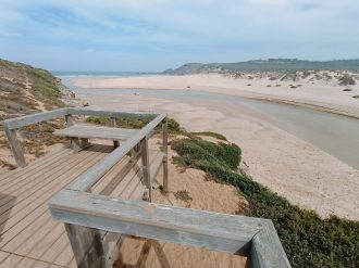 Entlang der langen Sandstrände von Ilha do Pessegueiro, Aivados und Malhão erstreckt sich diese beeindruckende Strand-Etappe.
